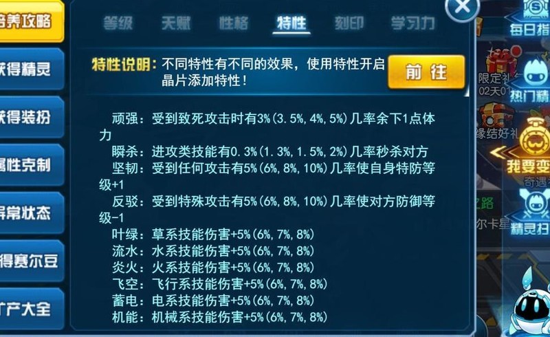 在游戏中,点击右下角的NONO,选择我要变强,进入培养攻略后点击特性,即可查看各项特性的具体效果与触发概率。