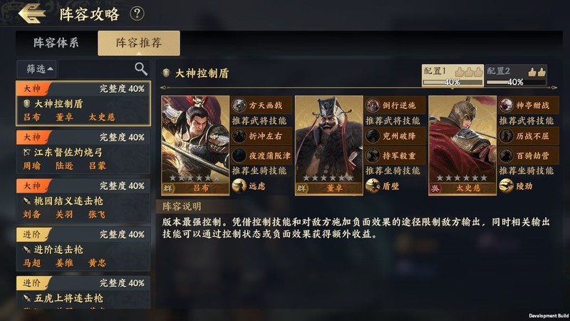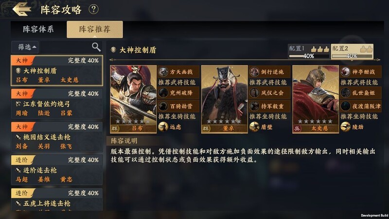 当前版本最强控制阵容,顶配控制队兼具控制与输出,武将和技能获取难度适中。