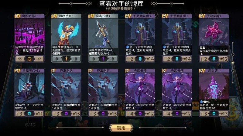 常规打法是:使用英雄主动技能夺取对方腐蚀迷雾,借助被动效果刷新对方牌库。若我方携带恶魔法典,可将主动技能给予对方,使我方每次击杀其生物时触发英雄被动伤害效果。