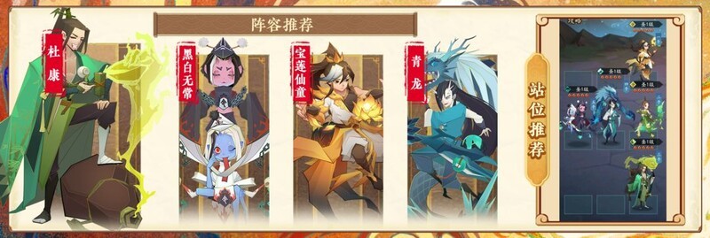 推荐阵容:飞羽主角搭配杜康、青龙,辅以黑白无常和宝莲仙童。