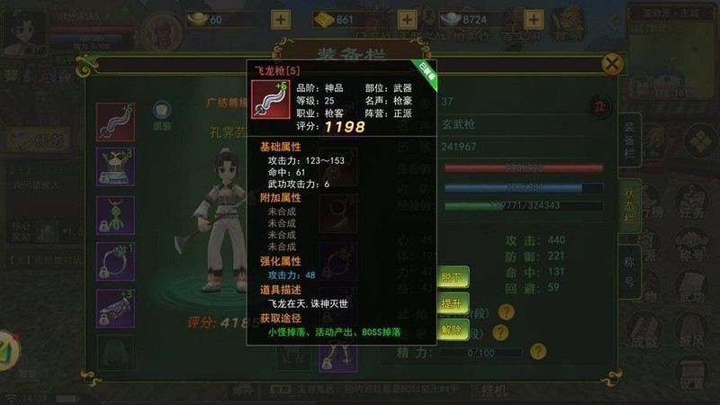 武器战斗力由基础、附加和强化三类属性构成。基础属性固定不变,初始即定终值。附加属性通过合成属性石获得,可用八卦回天符清除。强化属性则依赖武器强化提升。后两类操作均需在主城进行,且会消耗大量银两。