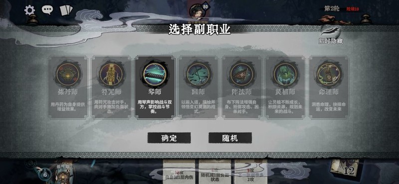 开局若遇到对方是阵法职业可能较难应对,建议第二轮选副职时优先考虑琴师,作为万金油副职适配性较高,尤其在困仙和断肠等情况下表现稳定。