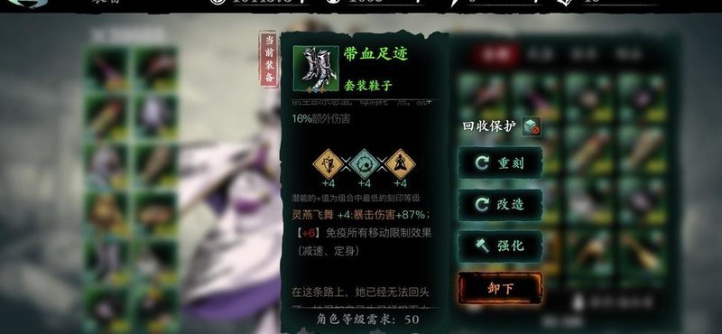 鞋子可刷灵燕飞舞刻印,提升暴击伤害。