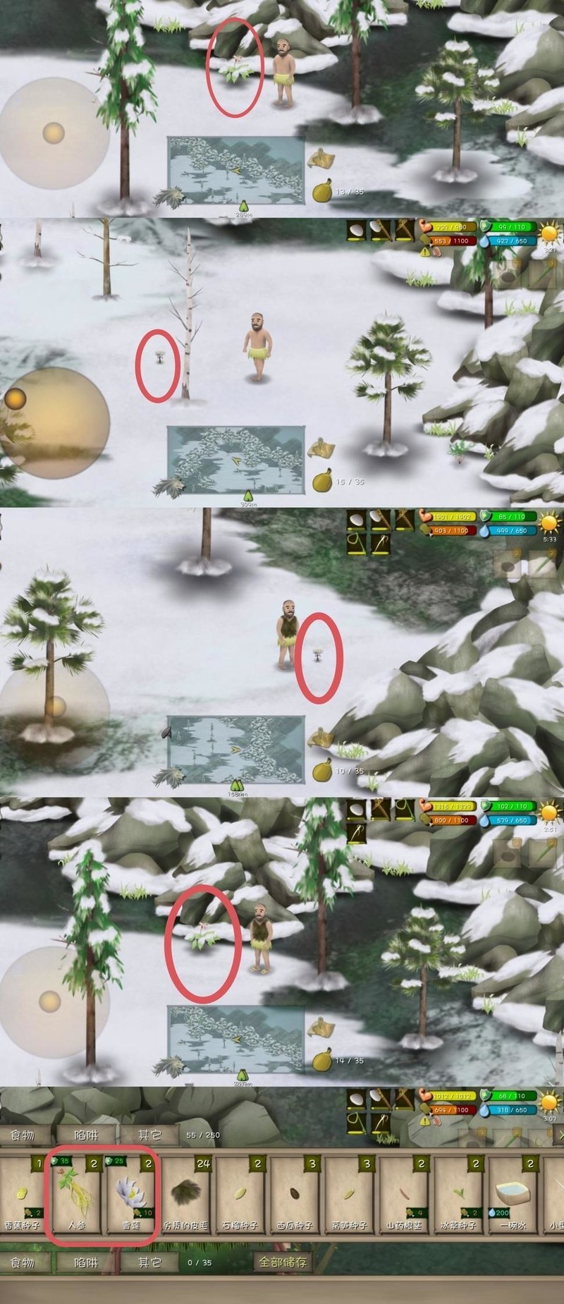 两处雪莲刷新点均发现人参,且两株人参位于同一地点。