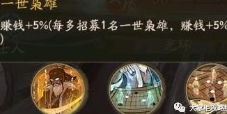 每招募一位一世枭雄,赚钱效率提升5%,最多可招募六位,累计最高提升30%。