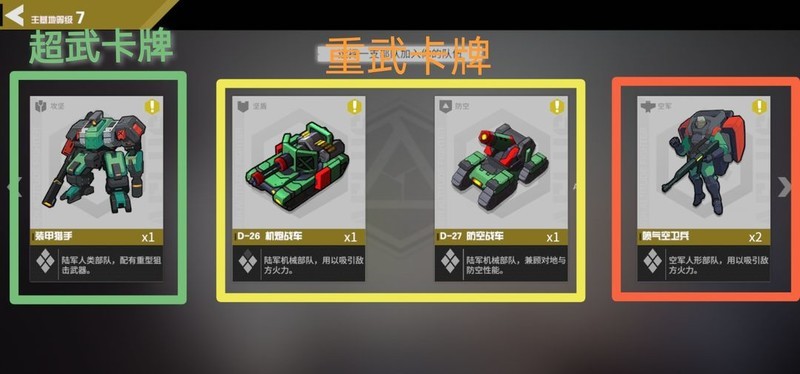 3、4级将随机新增两种重型兵种卡牌供选择。
