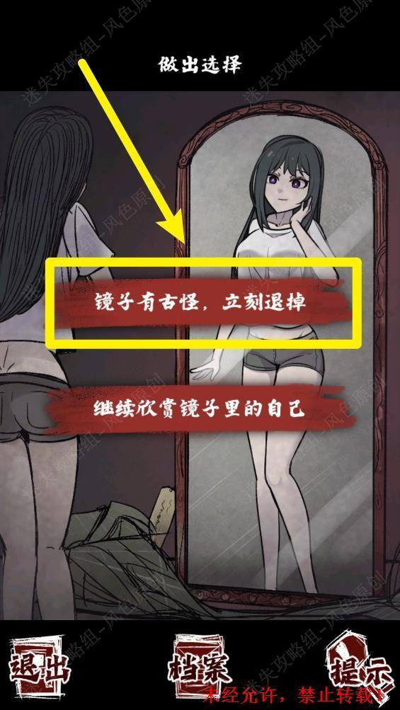 点击照镜子,出现选项后选择继续欣赏镜中的自己。