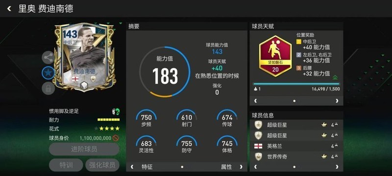 传奇圣殿费迪南德基础能力值达143,搭配坚如磐石天赋与四星花式技术,完美还原了他在现实比赛中的控球优势。该天赋显著提升了他的身体素质,使他在防守端表现更为出色,不仅能够胜任多种一对一防守任务,战术上的适用性也得到了明显增强,实战表现更具价值。