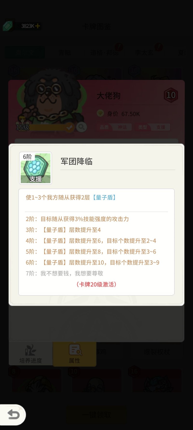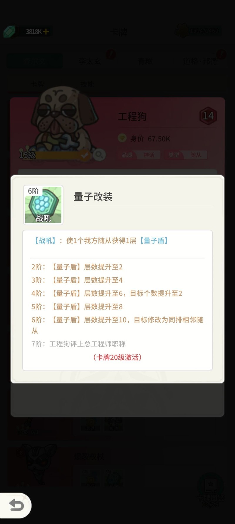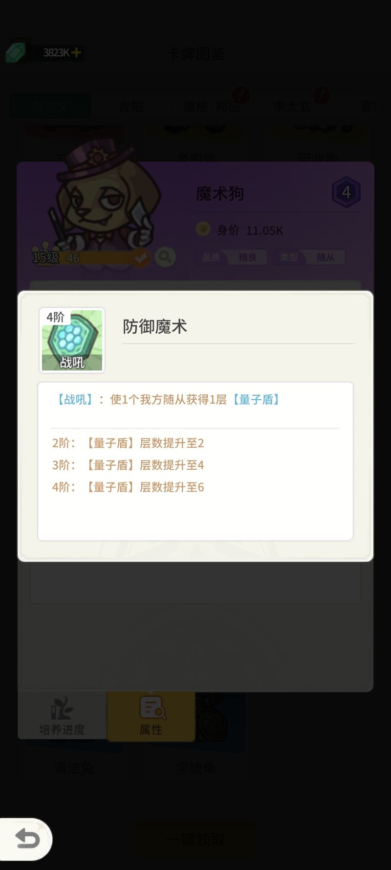 量子盾随从强化,大佬狗技能提升。