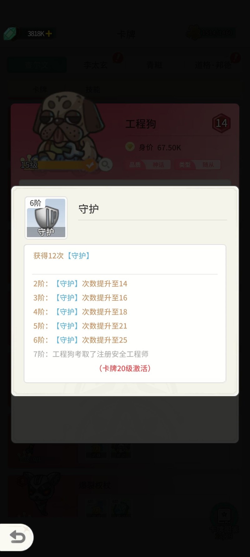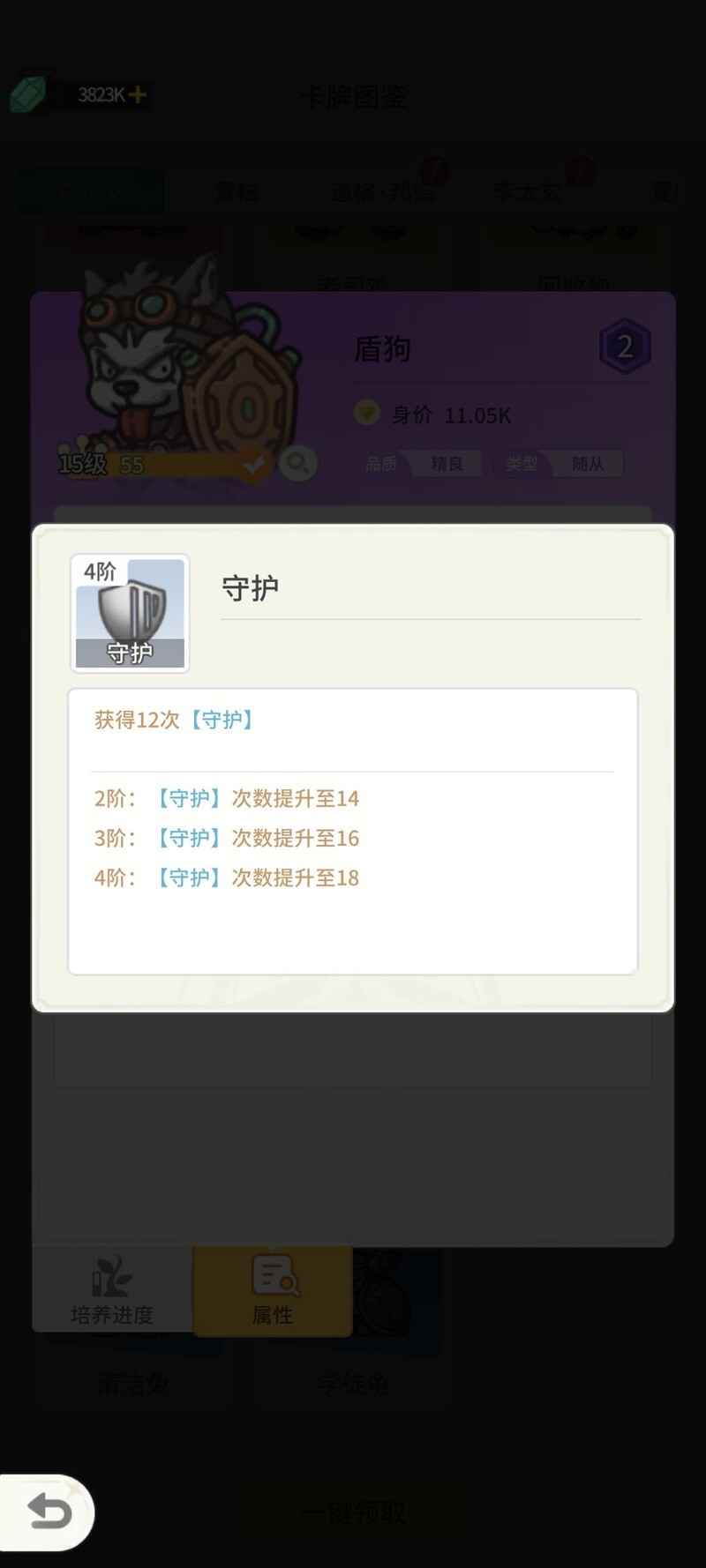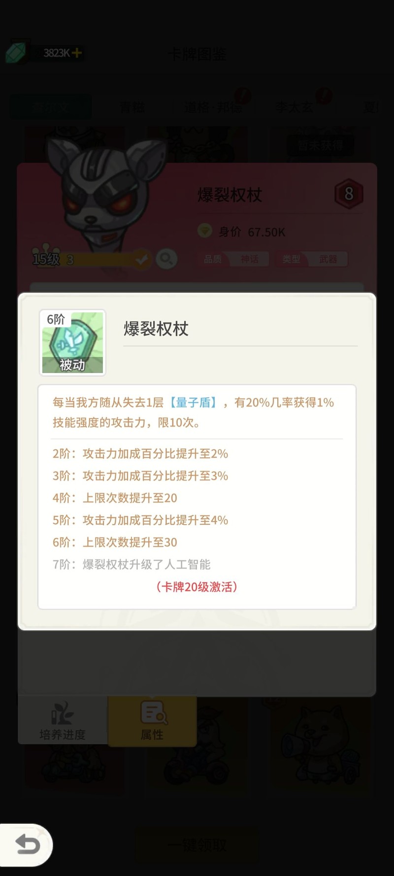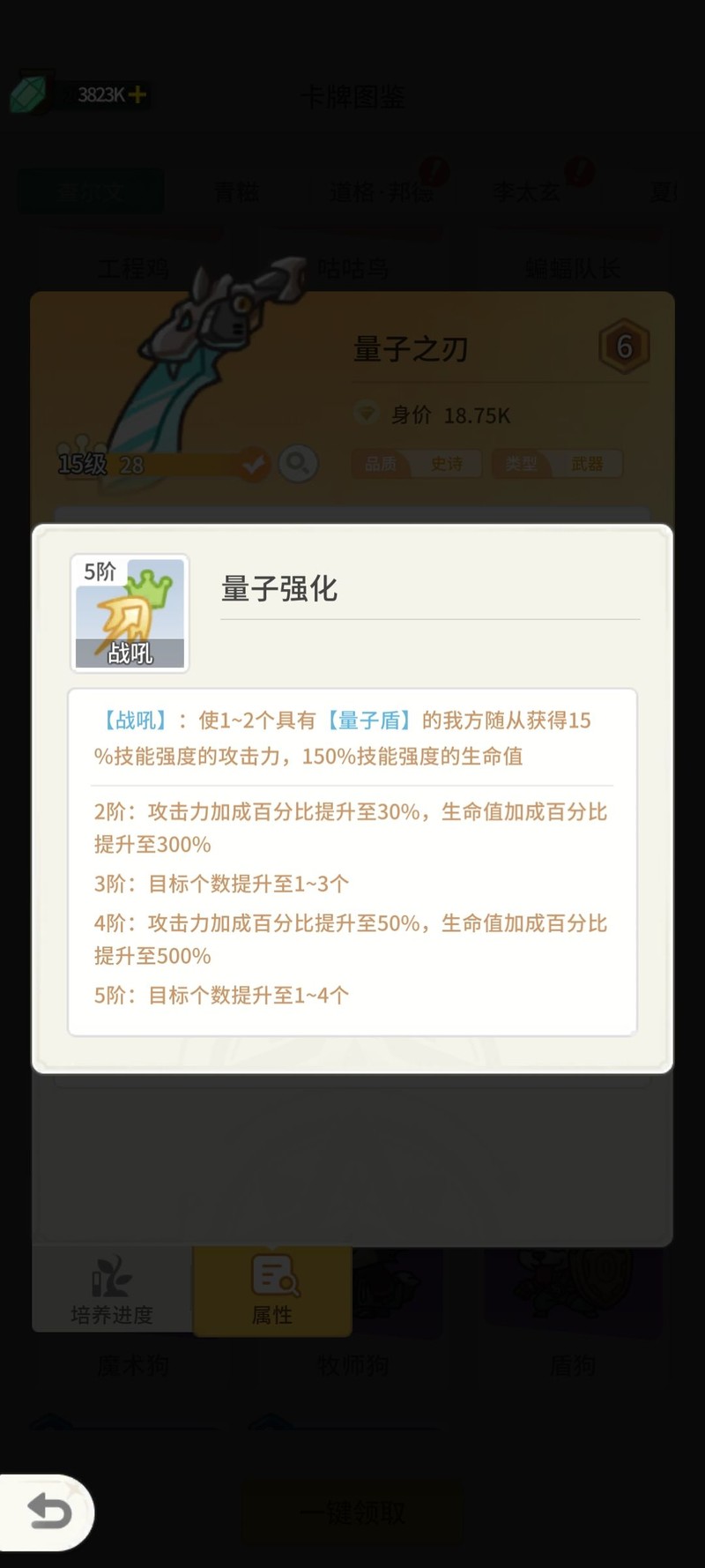量子盾随从强化,大佬狗技能提升。