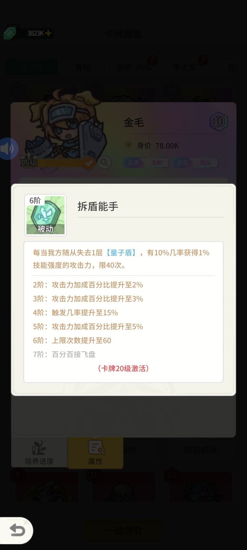 金毛:量子盾消失时随从获得攻击力提升,但不增加生命值。