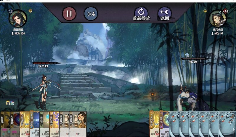 虽然此前未打出此牌,但经计算发现自身伤害略低20点。在剑宗66张牌中,唯有剑意激荡一张可扭转局势,实现逆转获胜。