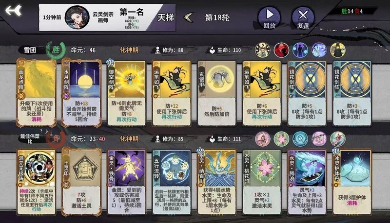 月影满级即为最强形态,无需云形态加持,输出直接拉满。因其扣血机制是按百分比计算,境界越低受到的伤害越少。战斗中应将其放在输出卡前释放,不要轻易调整血量或提前开启防御牌,应先让对手攻击后再反击,尽可能减少血量损失,有时候多那么一两滴血,胜负就会不同。