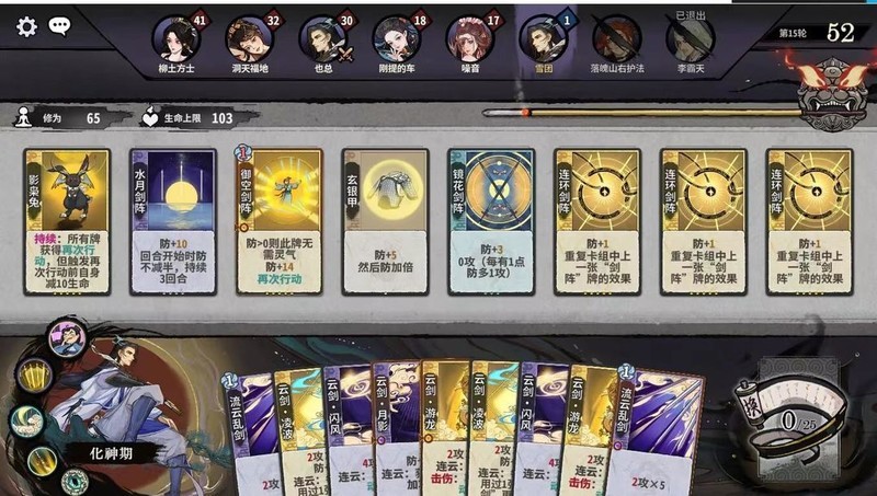 过渡阶段玄银甲尽量少用,有剑守时再动用,最好配合防御牌使用。拿到玄银甲后尽量不拆牌,元婴期小拆,化神期大拆。若血量难保,优先选择猫魂修养生息,确保生存为第一要务。