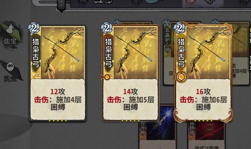 化神法宝有镇魔印、护心镜和猎兔弓。