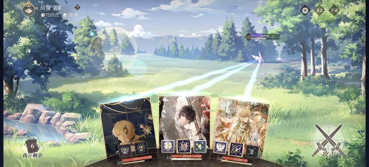 通关核心思路是打持久战,以控制和回血能力强、血量厚的卡牌为主力,高战斗力卡牌留一张用于推进。若遇到难关,可参考使用三张治疗卡组合,只要耐心周旋,就能耗死对手。
