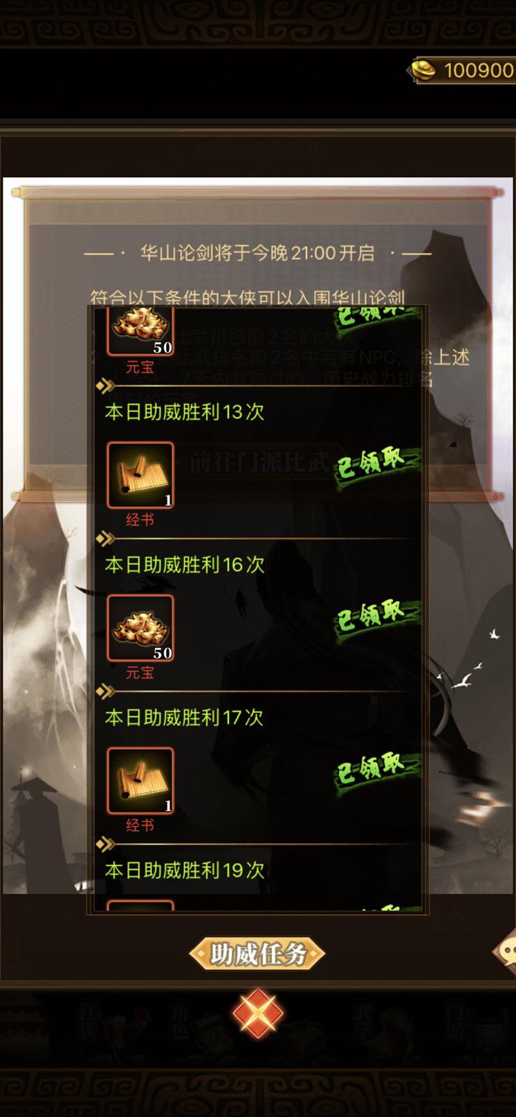 华山论剑助威任务是获取经书的主要途径。