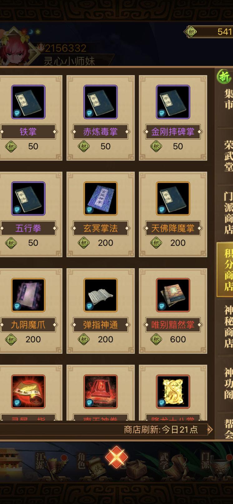 各门派专属装备与武学可获取,免费扫荡次数亦可全部使用完毕。