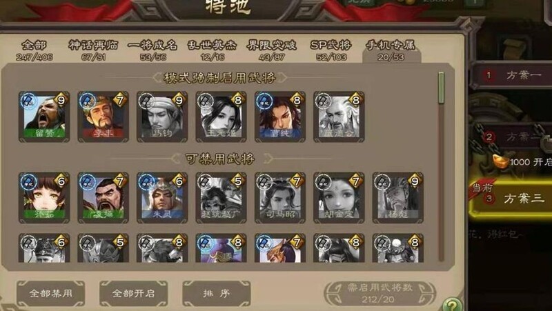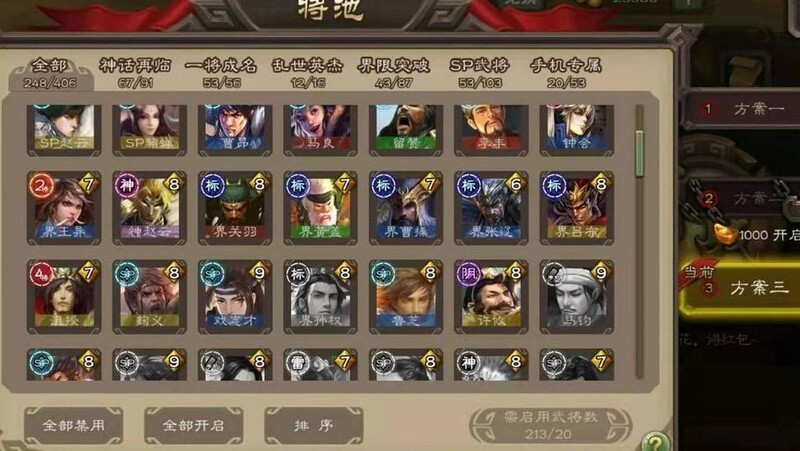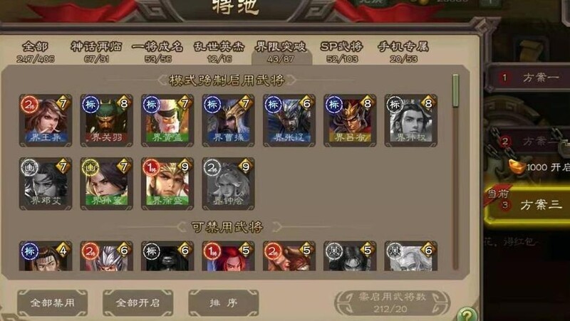 官阶较低者可额外开启:界马岱、界许褚、界刘禅、界马超、界魏延、界甘宁。
