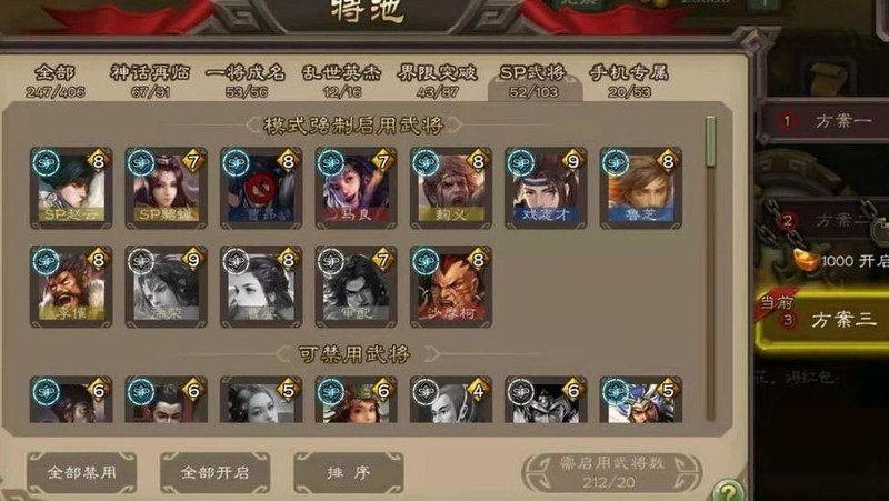 当禁将数量充足时,多位禁将可启用;若数量不足,则需额外开启。