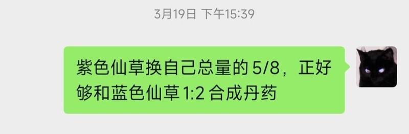 黑市兑换比例为1:1.2,最终能炼制的丹药数量是紫草剩余部分的3/8。