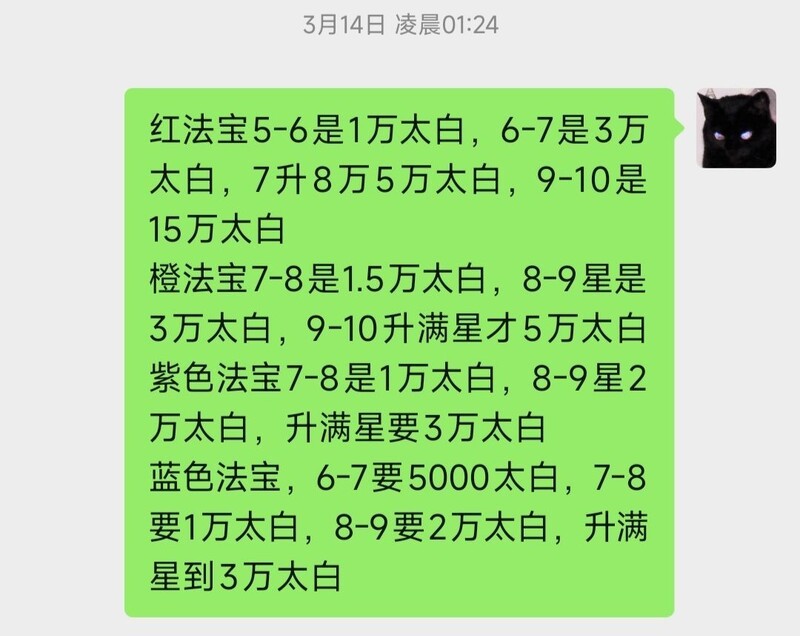 法宝升星需要的太白数量