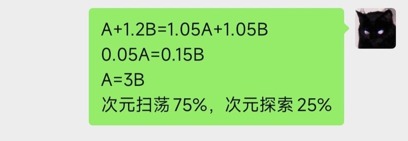 前几天刚做了一些计算,主要考虑了天象带来的加成效果。原本在权衡是否值得用道具去兑换天象,毕竟现在战令提供了自选天象的道具。初步以为收益会比较高,甚至以为某些次元类天象能整体提升20%的收益,那样的话相当于多出近千紫草,差不多能省下600玉。不过实际记录数据后才发现,实际提升几乎可以忽略不计,尤其是所谓的次元类天象,其实只是在次元探索中提升20%,并非整体收益增加,因此实际效果远不如预期。