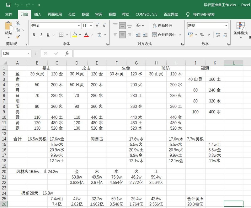 攻击生命暴击福源,3*8+4=28,需提前约28天储备草药。