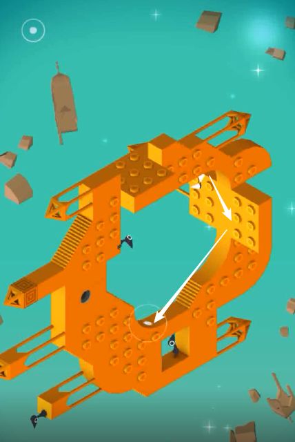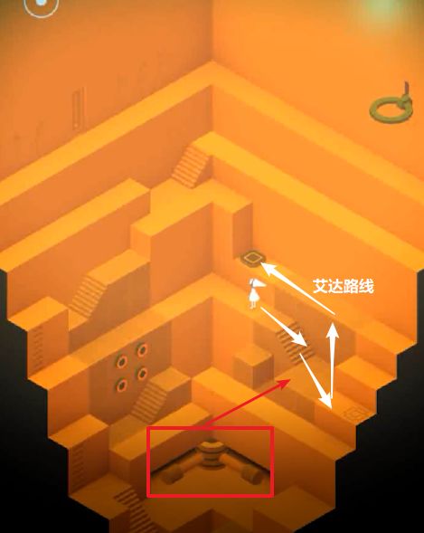 将乌鸦移动至机关位置,使其触发并踩住机关,借此将艾达引导至此。注意时机把握,通常需在乌鸦站定后进行方向调整。当艾达行至断路处,旋转路径使其与大门连通。进入新区域后,上方的乌鸦踩下机关,下方通道随即转动。让艾达站在旋转通道上,待其接近对岸时,将顶部乌鸦移至另一侧,激活新的机关。通道再次转动,使艾达抵达对面平台。随后她踏上机关,地图随即发生改变,进入下一阶段。