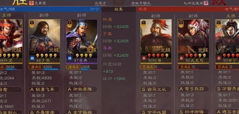 PVP战报:两位冷门五星武将搭配李典,在战功不占优的情况下,成功击败了全红甘太程强力阵容。