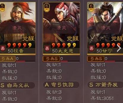 太史慈为副将,搭配战法弯弓饮羽与折冲御侮,攻防兼备,战斗力强劲。