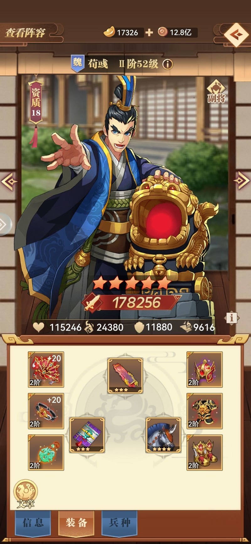 阵容搭配上,主角、典韦和曹操是核心必选,夏侯惇表现尤为出色,拥有嘲讽、反弹和禁疗技能,实用性强。主角也可学习禁疗技能,可通过张春华的扇子或直接借鉴夏侯惇的技能配置。