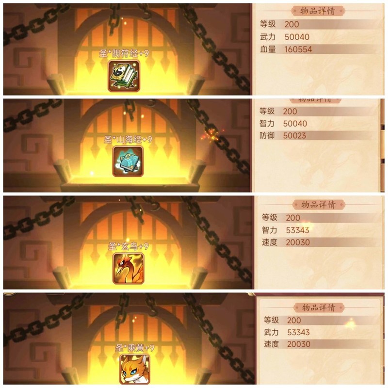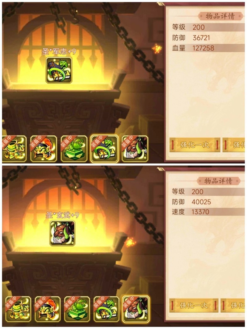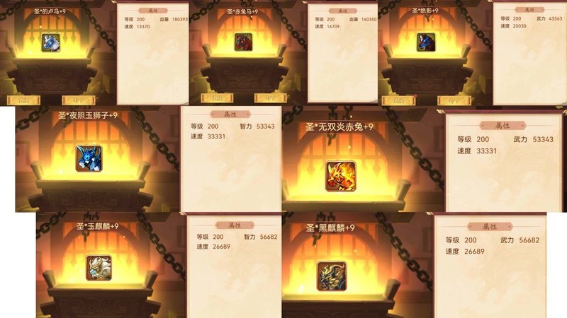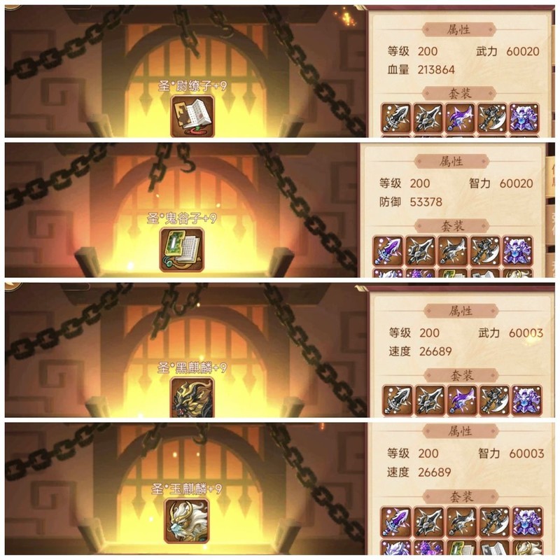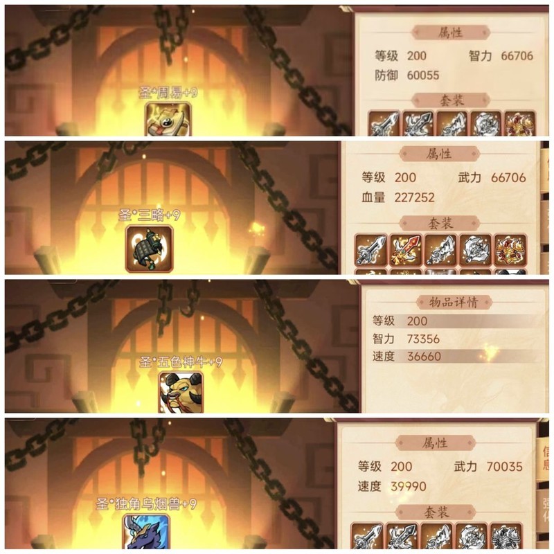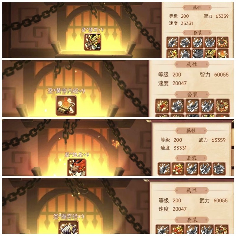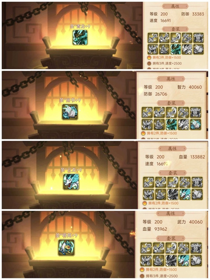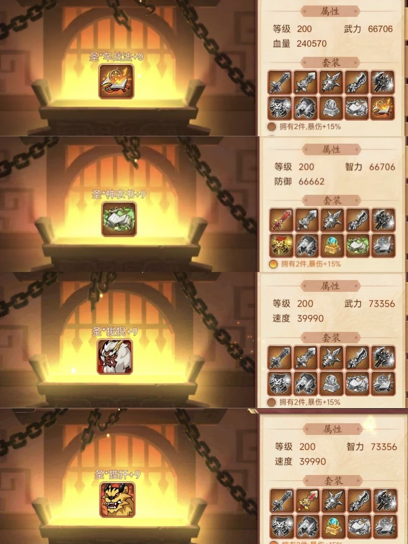 装备属性均为200级神圣+9属性。