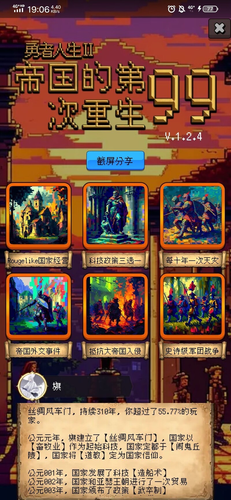 开局刷图,哥伦布随出咸阳(自动启用人物),初期目标:军事61,300年内实现入侵无忧(因秦已不在)