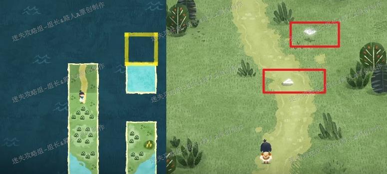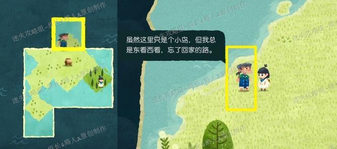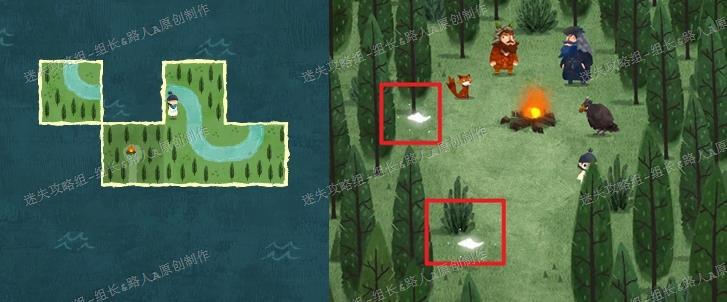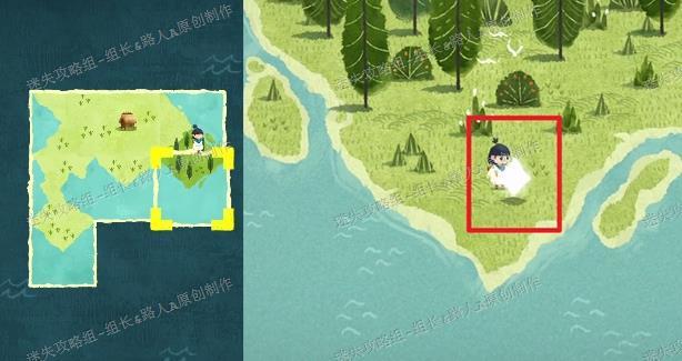完成剧情触发后,需寻找森林中的那户人家。先将所有地图拼合,前往小男孩所在位置。当两只粉色边框的海鸟从身旁飞过时,会留下两个地图碎片,拾取后发现是森林区域的拼图部分。