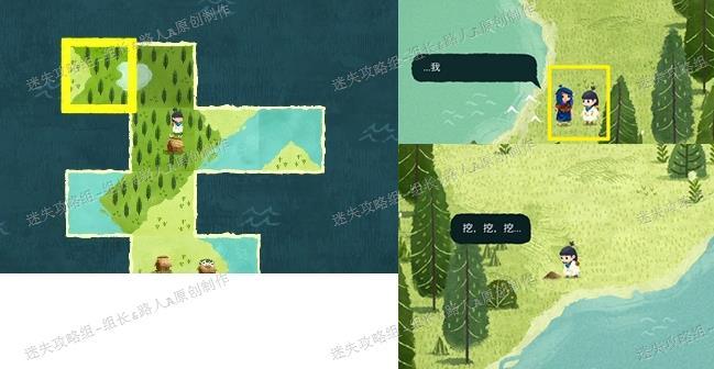 完成拼图后角色将刷新出现。与其对话可触发剧情并获得收集土壤的任务。所需土壤位于同时包含海洋、森林与草原的地块上,示意图已标明具体位置。在触发任务前,该地点仅显示为普通的小土堆,无特殊提示。