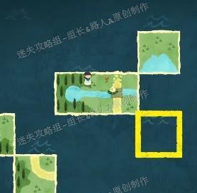 在森林区域存在解谜环节。每当成功拼接至少两块森林地块后,靠近该区域会出现一名孩童,他会指向另一片森林方向。根据提示,继续用森林地块连接其所指位置,逐步扩展森林范围。随着三处外围森林区块依次完成,中央会自动生成一片湖泊。随后前往湖边,与角色对话将触发剧情,获得一片叶子作为奖励。整个过程需循序渐进,依据线索不断延伸森林布局,最终达成目标形态。
