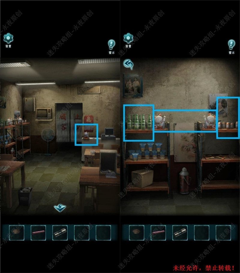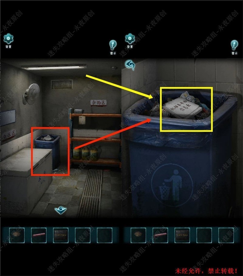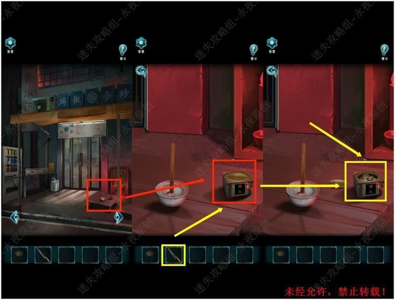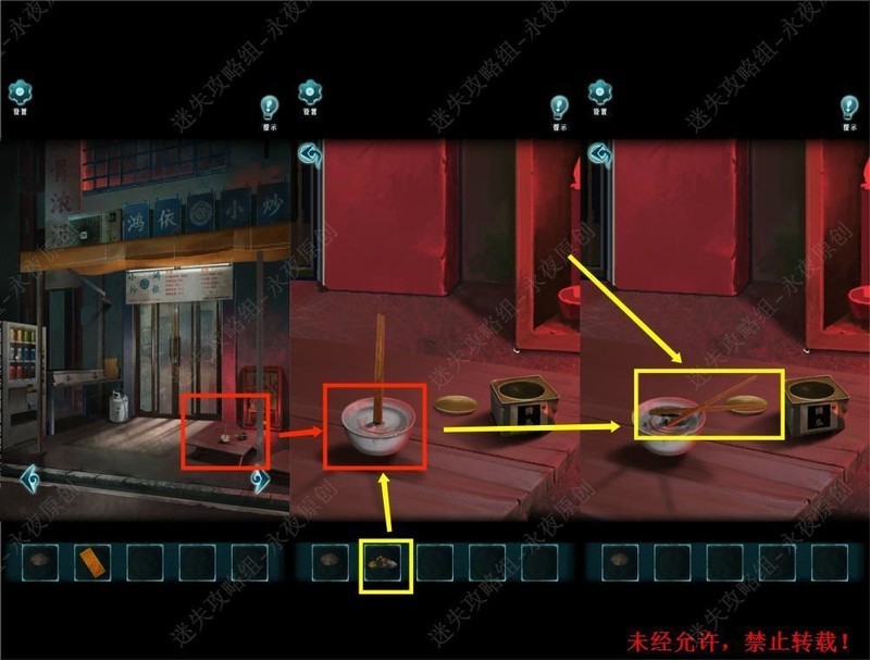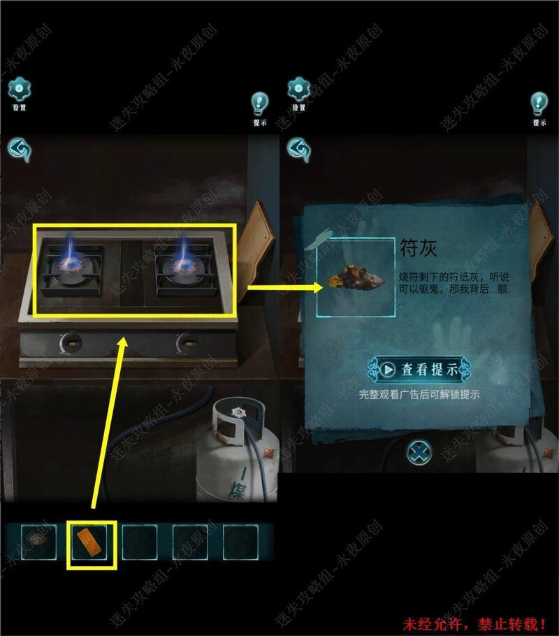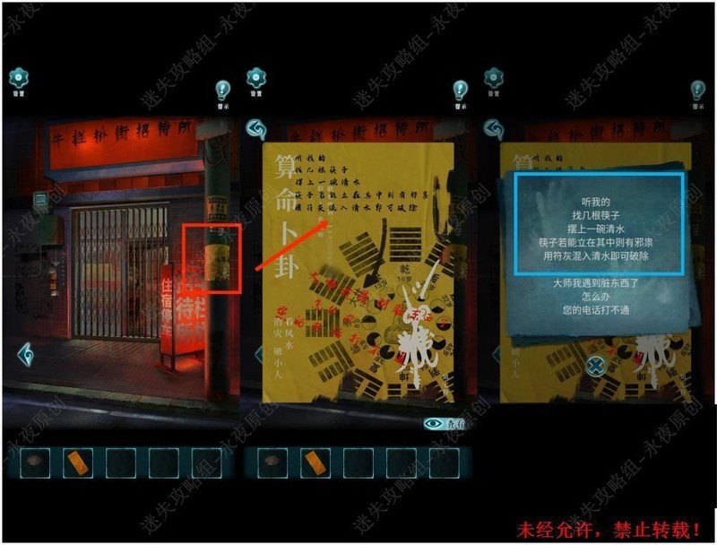 在101房间进行调查,对清水使用符灰,然后拾取筷子。