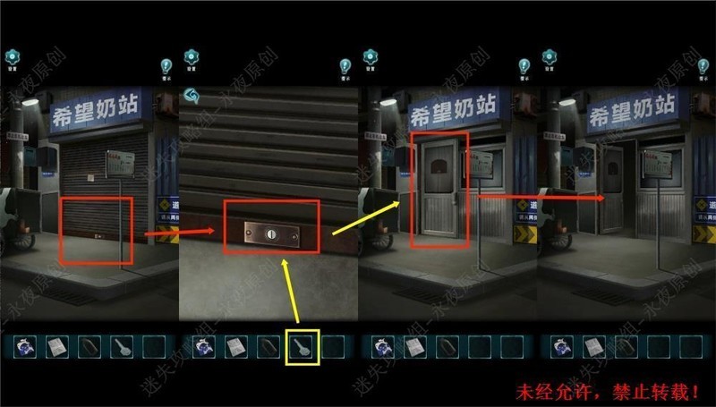 在85号地点,使用送奶站钥匙打开送奶站铁门,进行调查。