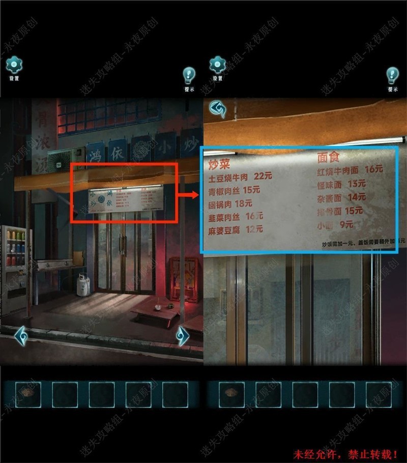 在109号地点调查,用饭店钥匙打开鸿依小炒的门。