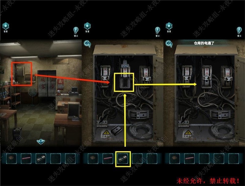 调查此处,检查电闸,使用保险丝恢复仓库供电。
