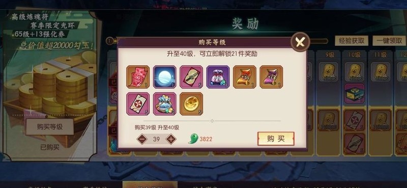 此图从第二级开启奖励,第一级奖励已列入清单:普通档为5万金币加卷轴三,进阶档为10万金币加30幽荡。