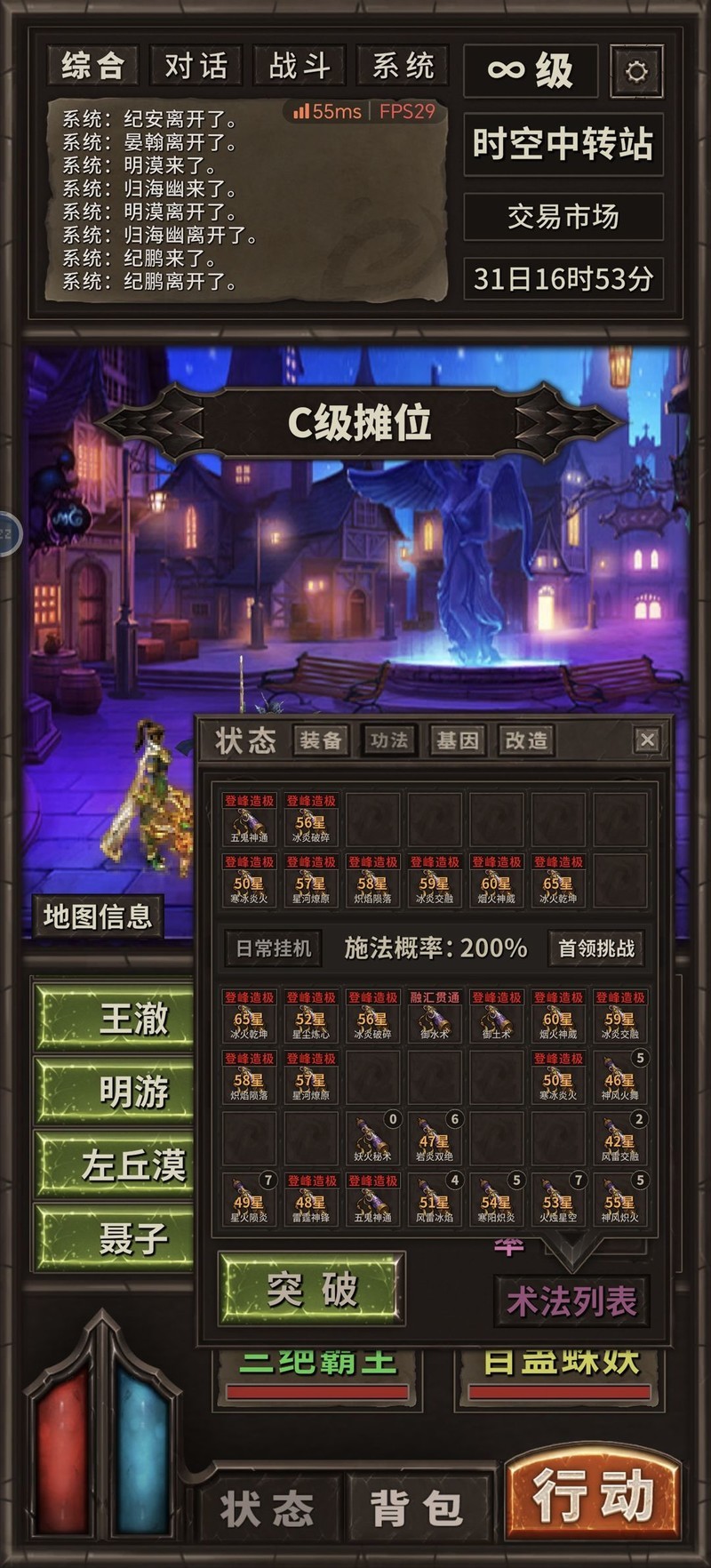 第三,关于修仙,起初我还得意于早早突破,以为能更早享受优势,但现在却发现难以调整。建议大家在有能力跃阶挑战Boss时,不要急于突破,尽量先提升至满闪避,因为金丹期的功法需要约4万技巧值才能顺利过关。