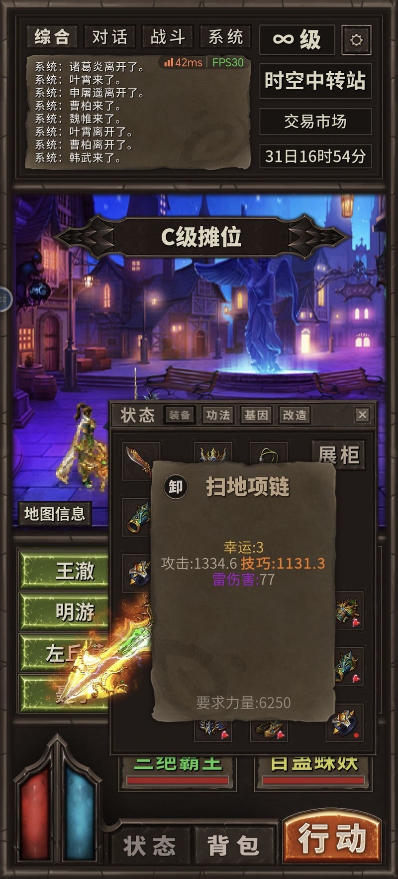 第四点,赌博是进入C图后的主要收入来源,无需浪费时间卖装备。挑战擂主时,当他能秒杀你时就停止挑战,通常会在第5、7、9个对手处遇到瓶颈,此时押注擂主获胜的胜率较高,约为三分之二。赢一场后即可将所得全部用于下一次赌博,资金是足够使用的。若与擂主实力相当,则不建议押注,因为胜负难以预测。
