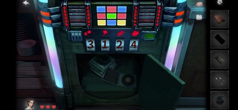 根据四位客人的手势提示,输入吧台机器密码3124获取唱片,留意机器上的图案,此为线索三。