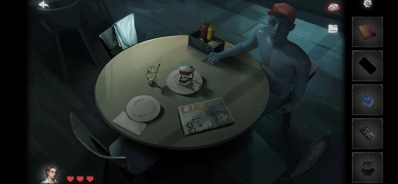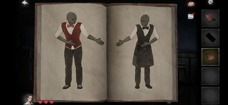 吧台摆放着菜单,需巡视各桌收集刀叉。协助小男孩与吧台男子完成点餐,肉汤位于另一桌,假人饮尽后倒下,手上留下唇印。