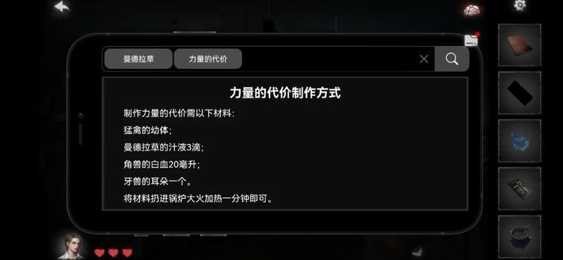 将金牙放进戴眼镜那桌的小费罐,换取一枚鸡蛋。依照查到的配方,在吧台调制出力量的代价让男子喝下,成功取得掉头。
