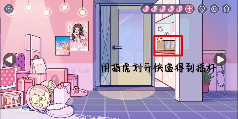 用钥匙开启抽屉,取出指虎,返回门口打开快递箱,滑动指虎取出摇杆。