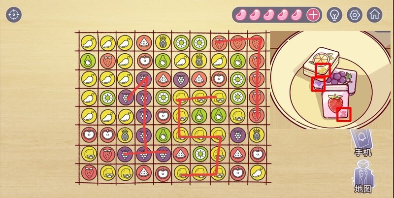 收集矿泉水后点击垃圾桶,可看到内部盒子标注葡萄1、柠檬2、草莓3。