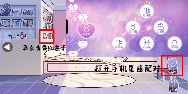先观察首饰柜中图案最多的区域,再查看化妆镜上的对应星座。